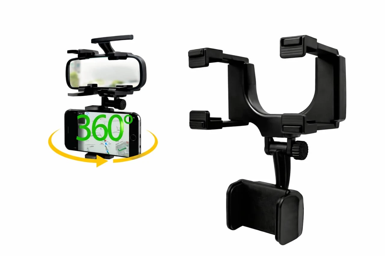 Product DescriptionDrive safely and conveniently with the 360° Rearview Mirror Car Phone Holder, a smart solution for hands-free phone use while driving. This innovative phone mount clips securely onto your car’s rearview mirror, keeping your phone at eye level for safer navigation and calls. With its 360-degree rotation, you can easily adjust your phone to the perfect angle for GPS, media, or hands-free communication. Designed for universal compatibility, it supports most smartphones and fits a wide range of vehicle mirror sizes. The strong ABS construction ensures durability and stability even on rough roads. Compact yet highly functional, this holder enhances your driving experience by combining safety, convenience, and modern design. Key Features🔄 360° Rotation – Adjustable viewing angle Product SpecificationsProduct Type: Car Phone Holder Package Includes