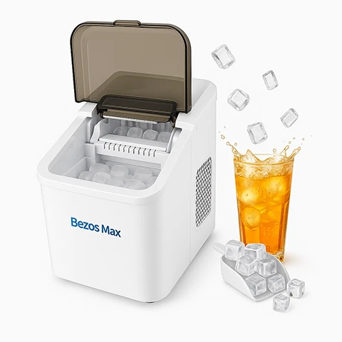 The Bezos Max Bullet Ice Maker is your perfect solution for quick and efficient ice production. With the ability to make 9 ice cubes in just 6-8 minutes, this ice maker is ideal for parties, restaurants, offices, or any setting that needs a continuous supply of ice. Its compact design ensures it takes up minimal space while offering high performance. Capable of producing up to 12KG of ice in 24 hours, it provides plenty of ice for all your needs, whether you’re hosting a gathering or just need ice for daily use. The user-friendly interface and auto-shutoff feature make it easy to operate and safe to use. Enjoy perfectly formed bullet ice cubes with the Bezos Max Bullet Ice Maker. Key Features: