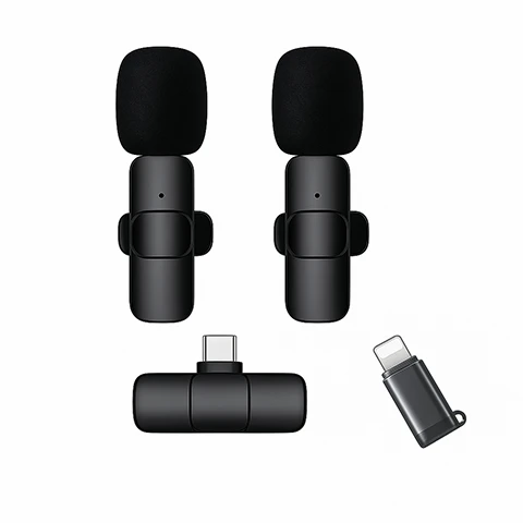 Dual Wireless Microphones with Type-C Receiver + Lightning Adapter – Plug & Play Audio for Content Creators ✅ Key Features: