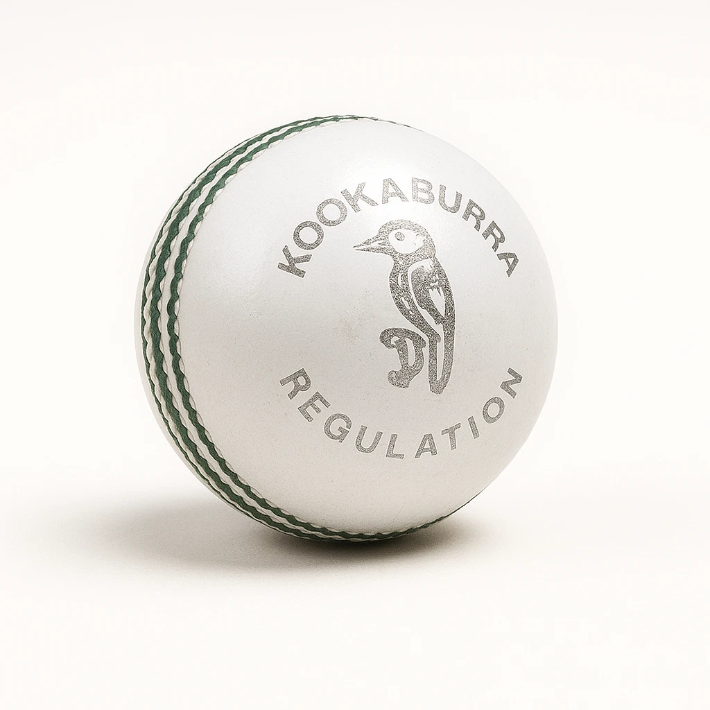 The Kookaburra Regulation White Leather Cricket Ball is engineered for superior visibility and professional-level performance in day/night or white kit matches. Hand-stitched with high-quality leather, it features a durable finish and optimal seam for swing and spin control. A perfect choice for club and tournament play.