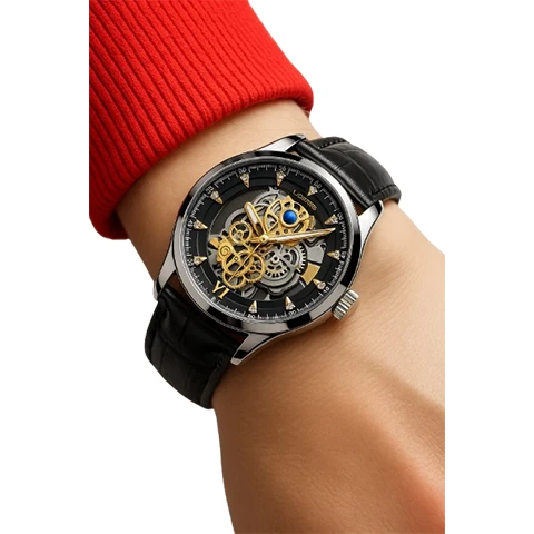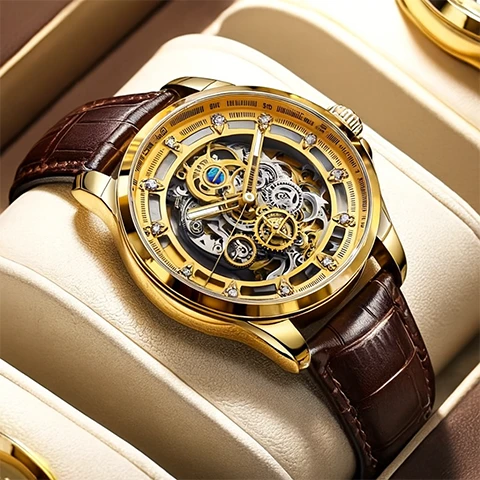 Experience timeless sophistication with the Luxury Gold Skeleton Automatic Watch, crafted for those who appreciate fine engineering and style.