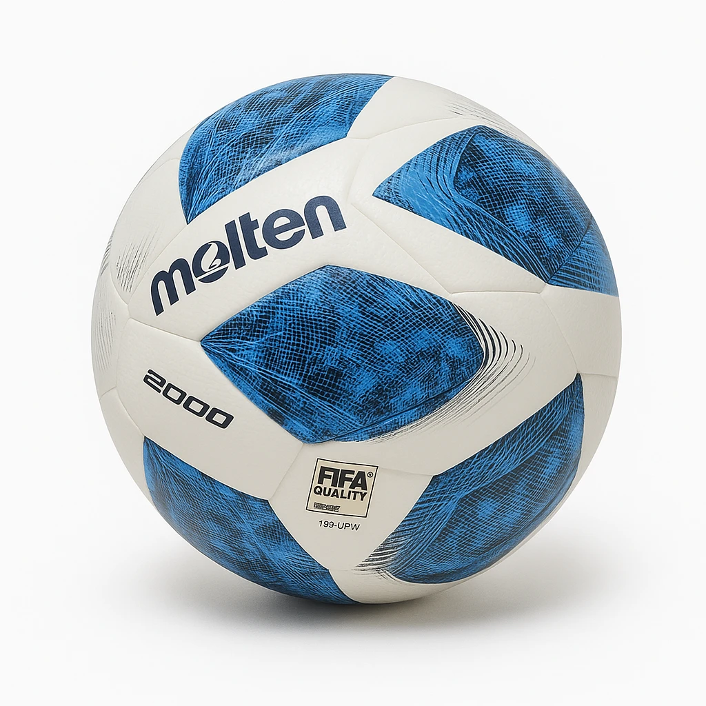 Experience professional-level performance with the Molten 2000 FIFA Quality Pro Soccer Ball. Designed for precision and durability, this size 5 ball features a dynamic blue and white pattern with textured panels for superior grip and control. It meets FIFA Quality Pro standards, ensuring reliable flight, bounce consistency, and rugged wear for both training and match play. Ideal for serious players and competitive games.