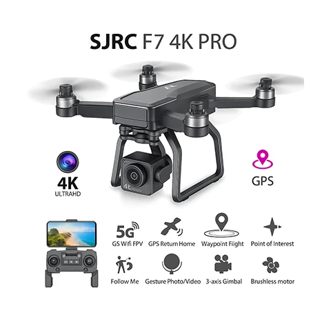 Take your aerial photography to the next level with the SJRC F7 PRO 4K Drone, a high-performance foldable quadcopter designed for precision, stability, and ultra-clear imaging. Equipped with a 4K UHD camera mounted on a 3-axis gimbal, this drone captures professional-quality photos and smooth videos from breathtaking heights. Built-in GPS positioning enables intelligent flight features like Follow Me Mode, Waypoint Navigation, Gesture Photography, and Auto Return to Home, giving you control and safety even in complex environments. Its brushless motors ensure a powerful and quiet flight, while 5G WiFi FPV transmission provides real-time, lag-free visuals straight to your smartphone. The SJRC F7 PRO comes with a foldable design for portability and easy storage, making it your ideal travel companion. With a flight time of up to 25-30 minutes per battery and support for multiple batteries, you’ll enjoy extended sessions without interruption. Whether you're a hobbyist or a professional drone enthusiast, the SJRC F7 PRO delivers unmatched value, performance, and reliability. Key Features: